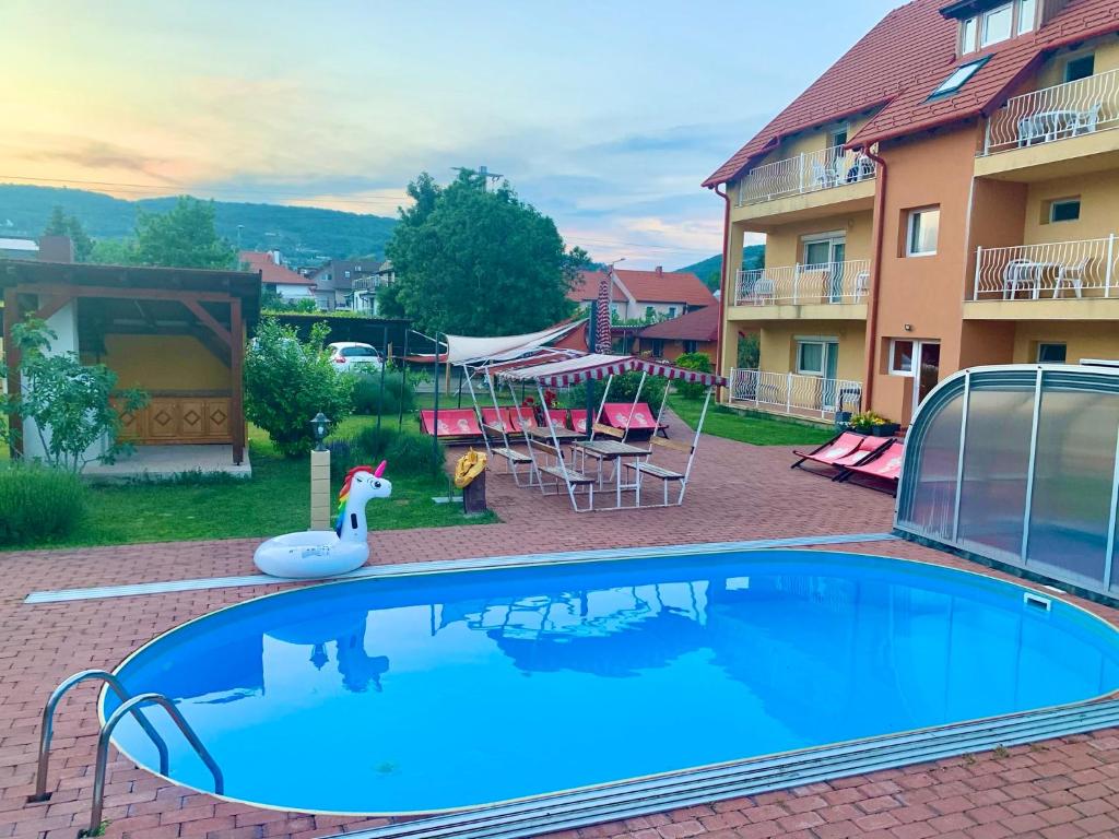Featuring an airy green garden with a swimming pool, Andrea Pansio enjoys a central location in Balatonfüred 500 metres from the beach of Lake Balaton. It offers rooms with a balcony and a flat-screen TV. Free Wi-Fi is available in all areas. The ga...