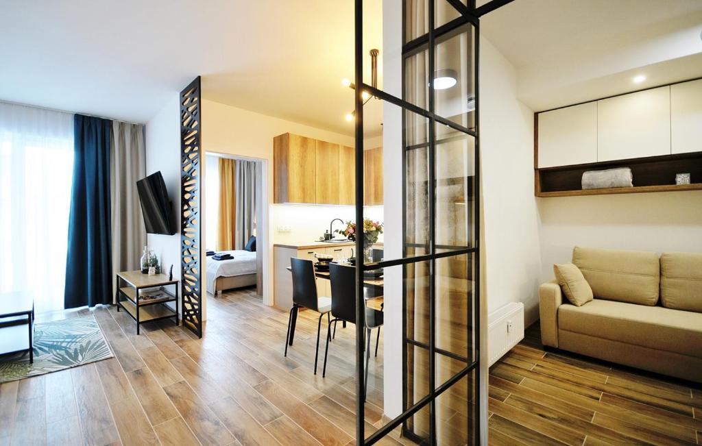 Featuring inner courtyard views, Apartament Za Świerkami 6 osób, 3 pokoje offers accommodation with a garden and a balcony, around 2.6 km from West Beach. This property offers access to a terrace, free private parking and free WiFi.